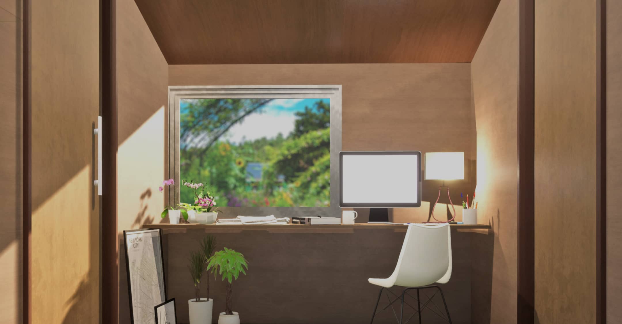 自宅の庭や駐車場のミニマムな空間に手軽に増設できます。ウッドデッキで自宅と連結すれば、母屋の離れとして利用ができます。職住一体型の生活が注目される中、プライベートと仕事を緩やかにつなぐ暮らしを実現します。